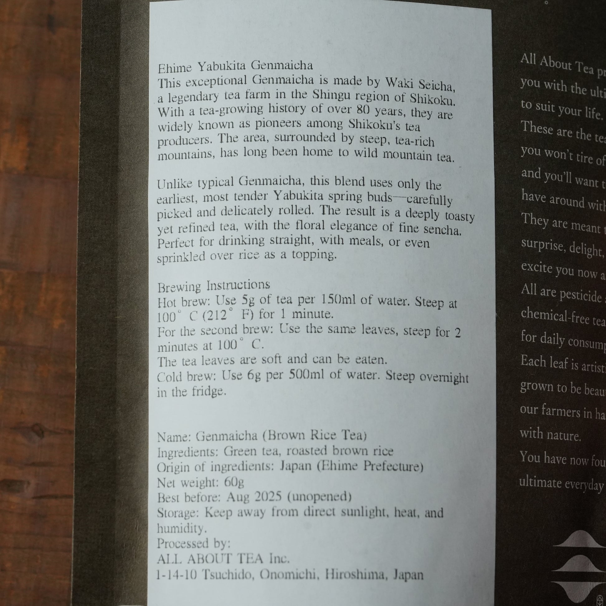 Ehime Yabukita Genmaicha - Fresh Green Tea with Roasted Brown Rice Flavor by TEA FACTORY GEN 60g/2.11 oz